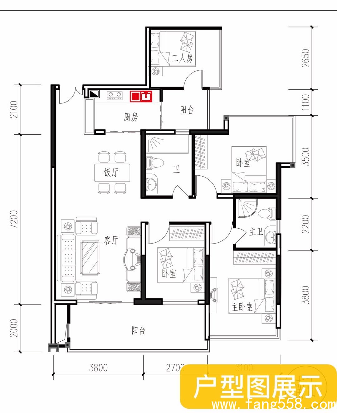 四房两厅:156-184平方米。